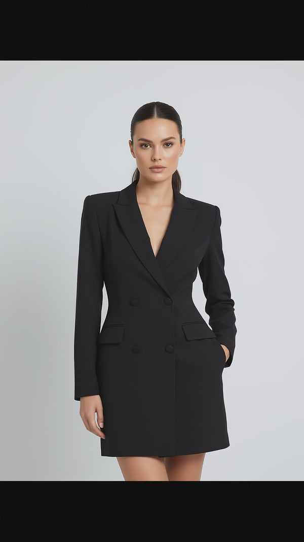 Blazer Robe Noir Croisé - Coupe Cintrée Élégante