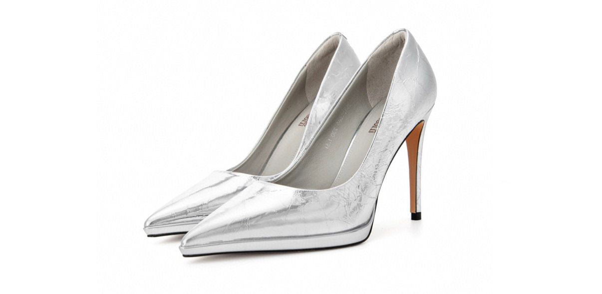 L'éclat futuriste rencontre l'élégance classique dans un escarpin qui capte tous les regards.